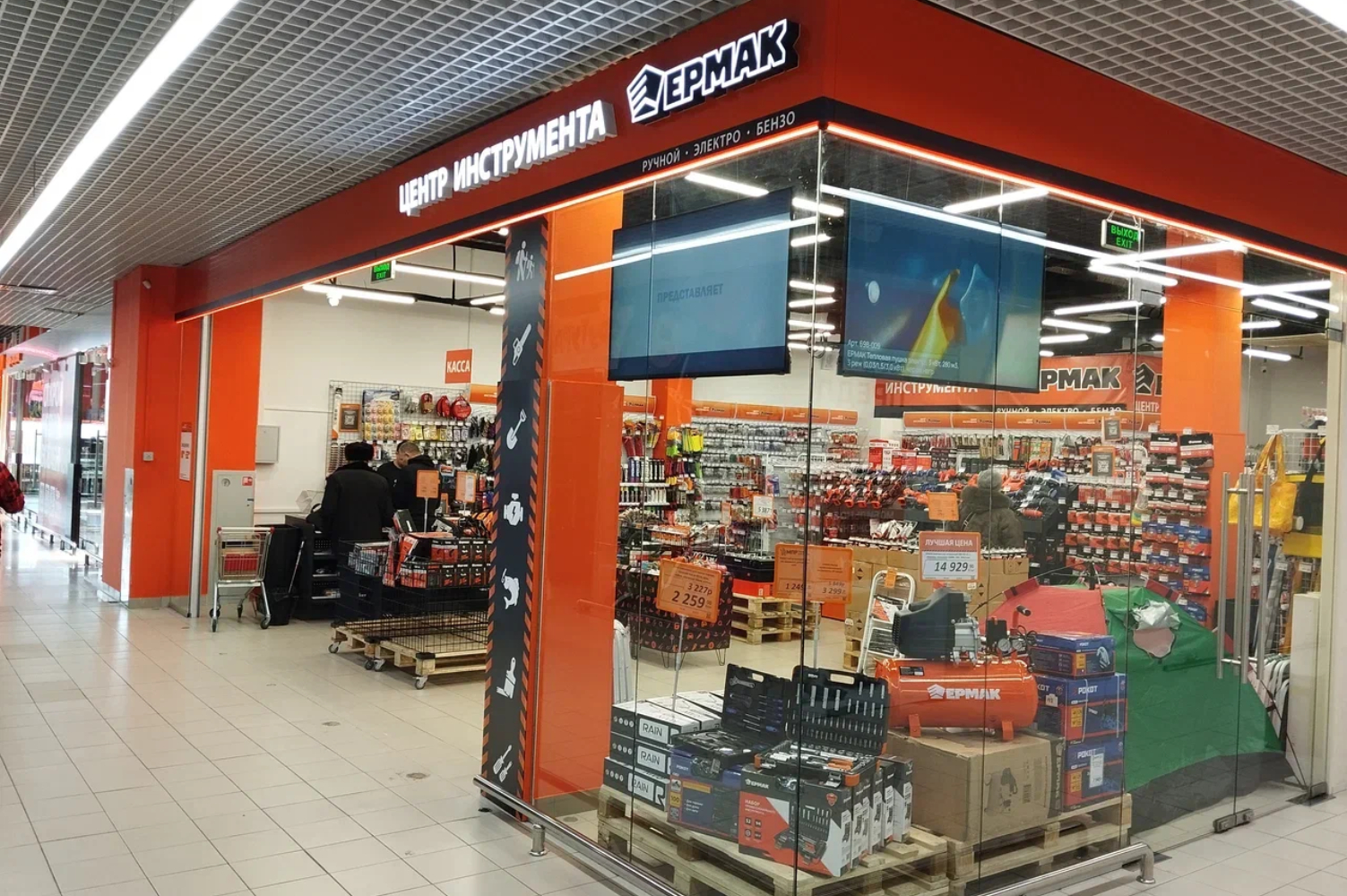 Помимо ассортимента предоставляемого холдингом, рекомендуем завести в ассортимент магазина метизы, краски, сухие смеси. Если позволяет площадь, нужно завести в ассортимент брус, металлопрофиль, ОSB плиты, гипсокартон. Обязательно наличие в торговой точке инструмента других торговых марок, по цене дороже ТМ «Ермак»